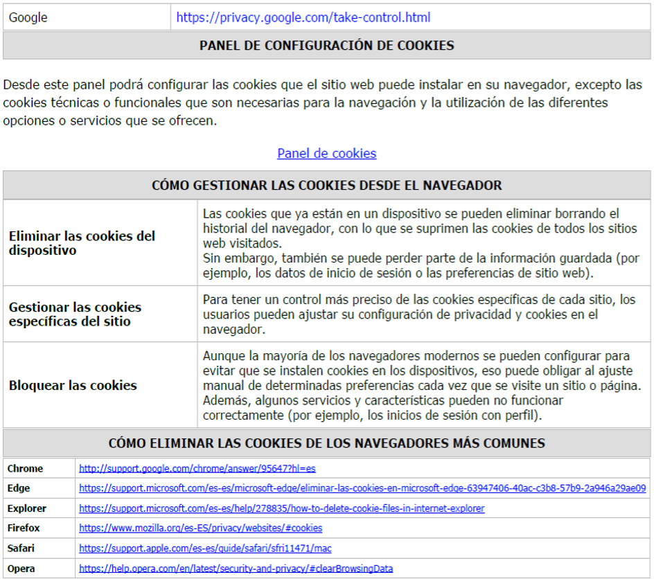 Conforme con la Ley 34/2002, de 11 de julio, de servicios de la sociedad de la información y de comercio electrónico (LSSI), en relación con el Reglamento (UE) 2016/679 del Parlamento Europeo y del Consejo, de 27 de abril de 2016, General de Protección de Datos (GDPR) y la Ley Orgánica 3/2018, de 5 de diciembre, de Protección de Datos y Garantía de los Derechos Digitales (LOPDGDD), es obligado obtener el consentimiento expreso del usuario de todas las páginas web que usan cookies prescindibles, antes de que este navegue por ellas.